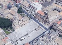 La fabbrica della chiesa di San Giovanni si prolungò per decenni e comportò perizie e ripari per timori di crolli dell’alto campanile. Quando alla fine del XVIII secolo su uno dei lati della piazza si iniziò a costruire il moderno collegio di Maria, si pensò anche di riprogettare il sagrato che sappiamo era a più quote e con tre scale. Il progetto in corso di realizzazione nel 1795, probabilmente a opera di un architetto catanese come Antonino Battaglia, scomponeva le quote su due livelli e ricavava gli spazi per una loggia, con locali presumibilmente destinati ad essere affittati