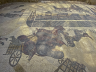 Le quadrighe degli Azzurri e dei Bianchi inseguono i carri dei Rossi e dei Verdi che sono già oltre la meta. Nonostante un naufragium abbia rovesciato a terra l’auriga dei Rossi con i cavalli, quest’ ultimo riprende la gara dopo l’accidentale contatto con il carro dei Verdi. La raffigurazione musiva è presentata con dettagliato realismo. Nell’arena sono, inoltre visibili, uomini a piedi, gli sparsores, che avevano il compito di gettare acqua su cavalli e aurighi per rinfrescarli oltre che impedire il surriscaldamento delle ruote dei carri provocato dall’elevata velocità.